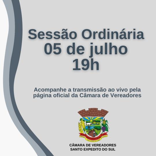 Dia de Sessão Ordinária na Câmara de Vereadores de Santo Expedito do Sul. Acompanhe nesta segunda-feira, dia 05 de julho, o encontro do Legislativo expeditense. A Sessão terá transmissão ao vivo pela página oficial da Câmara de Vereadores no Facebook.