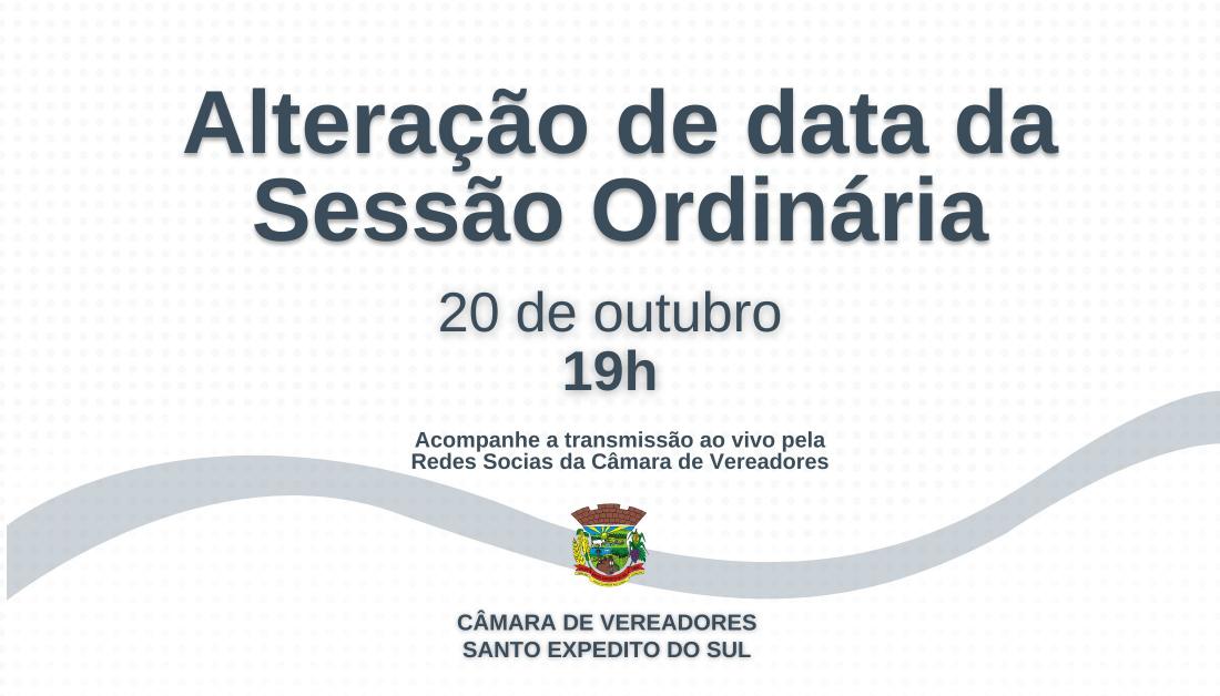 A Câmara Municipal de Vereadores de Santo Expedito do Sul comunica uma alteração na data da próxima sessão ordinária. A mesma foi transferida do dia 19, para 20 de outubro, às 19h.