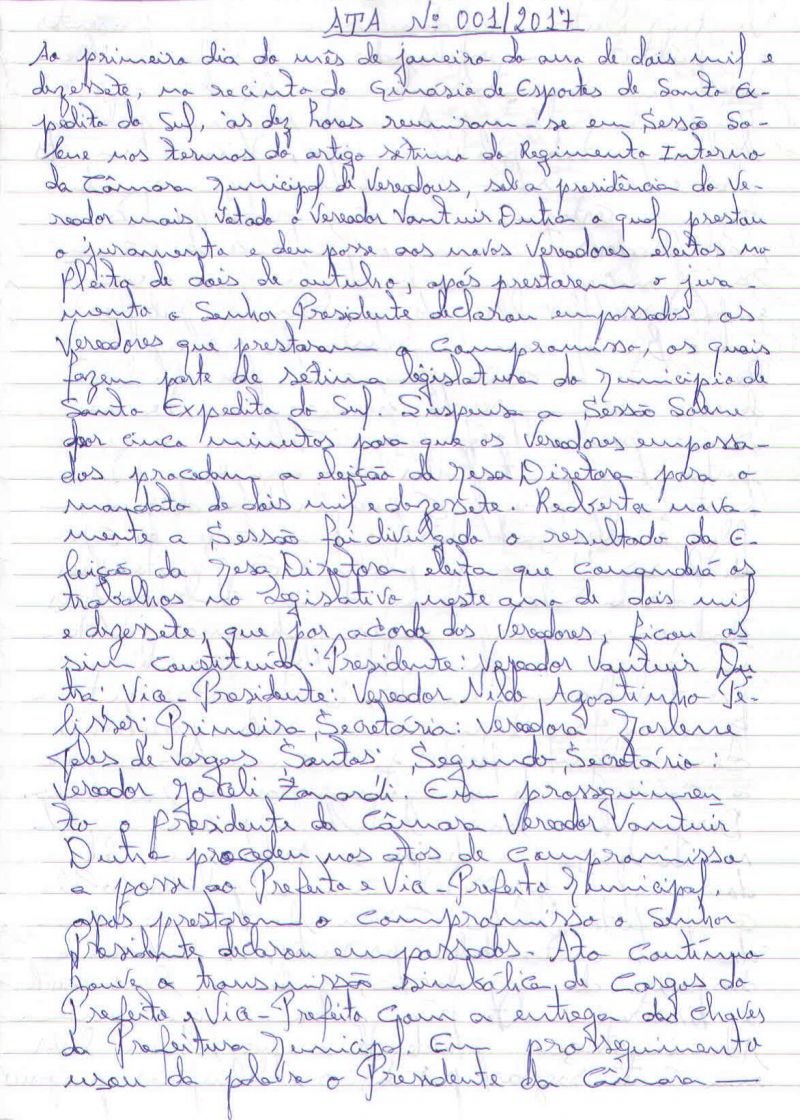 CÂMARA MUNICIPAL DE VEREADORES DE SANTO EXPEDITO DO SUL, 02 DE JANEIRO DE 2017.